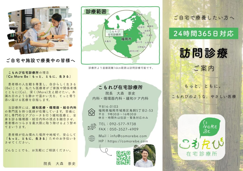 福岡市城南区 こもれび在宅診療所 院長の大森崇史です。