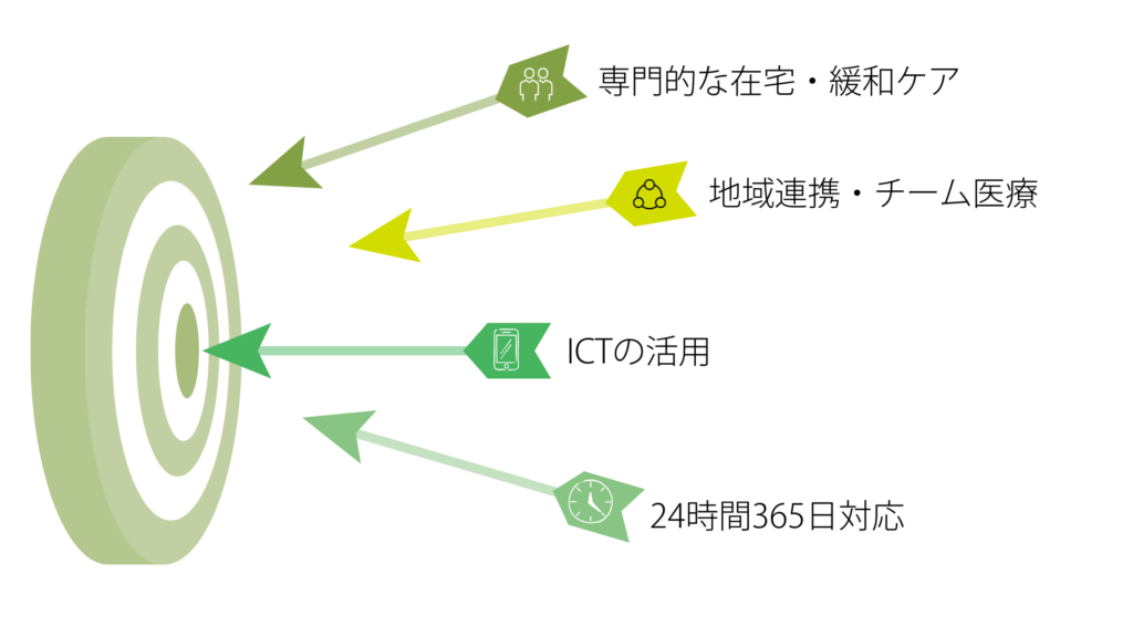 1人に依存しない、多職種・多施設で取り組むチーム医療を志向します。